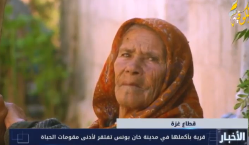 تجول مراسل "قناة الكوفية" داخل الحي الصغير والتقي بالمواطنة "خضرة أبو مصطفي" التي تعيش في بقعة من الأرض ليس لديها اي أدوات للعيش الأدمي اليومي.