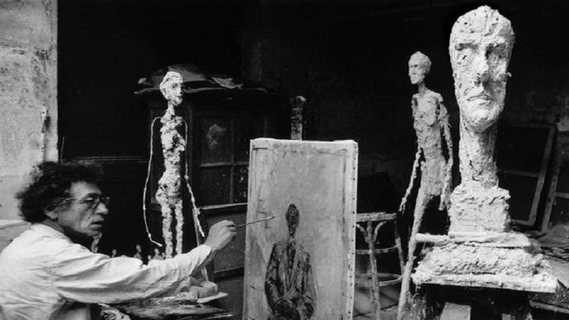 كان جياكوميتي شخصية غريبة للغاية ، وبنفس الطريقة التي تمسك بها بنموذجه النحتي المفضل حتى وفاته سنة 1966 ، بقي أيضًا في نفس الاستوديو المظلم الصغير والغير مريح في باريس رقم 46 شارع (Hippolyte-Maindron) طوال حياته منذ أن انتقل إليه مع أخيه في عام 1926 ولم يغادر أبدًا وكان شقيقة دييغو ينام دائمًا هناك وإذا لم يكن ألبرتو هناك فقد كان في فندق قريب حتى زوجته أنيت التي تزوجها بعد عقود كان عليها أن تجعل من هذا المكان الخانق منزلاً. وفي عام 1957 كتب الشاعر جان جينيه عنه (استوديو ألبيرتو جياكوميتي) وكان مفتونًا بتقشف ألبرتو الغريب وتجاهله لأبسط طرق الراحة وبمجرد النظر لأعقاب السجائر على الأرض حول قدميه في الصورة التي التقطت له في مشغلة في سنواته الأخيرة تعطيك انطباع أولى عن شخصية هذا الفنان العبقري الذي كان لا يؤمن ولا يثق بالبنوك ويرفض أن يضع نقوده في أي مصرف وكانت الأموال الكبيرة التي يحصل عليها يرميها على شكل رزم ملفوفة بين أكوم أدواته في الأستوديو دون اكتراث وعندما يحتاج نقود لا يتذكر أين رماها وأغلب آلاحيان يجد الجرذان قد أكلتها وكان يحرق أعماله عندما يشعر بالإحباط وهناك فيلم جميل جدا عنه قبل وفاته يظهر شخصيته الفريدة (FINAL PORTRAIT) انتاج مشترك بريطاني أمريكي كتبه واخرجة ستانلي توتشي وبطولة الممثل الأسترالي جيفري راش الذي يجسد فيه شخصية ألبرتو.