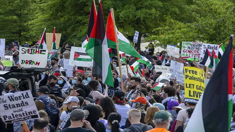 وهتف النشطاء المؤيدون للفلسطينيين خلال الحدث في الحرم الجامعي: "لا مزيد من الاحتلال"، و "فلسطين ستتحرر"، و "إسرائيل دولة إرهاب".