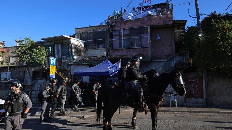وذكرت مصادر محلية، أن قوات الاحتلال دمرت مكتب الناشط المقدسي محمد أبو الحمص في الجانب الغربي من الحي، وهاجمت الأهالي والمتضامنين.