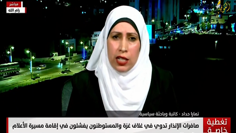 واعتبرت "حداد" في لقائها بقناة "الكوفية" الفضائية، أن السياسات والمخططات العنصرية الاستيطانية تسابق الزمن في نهب الأراضي بهدف التوسع الاستيطاني غير المشروع والمرفوض بشكل قاطع، محذرةً من استمرار اقتحام قطعان المستوطنين للمسجد الأقصى.