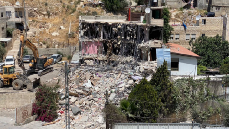 وهدمت آليات الاحتلال منزل عائلة الرجبي، بتاريخ 10 مايو/ أيار الجاري، المكون من 5 شقق موزعة، على طابقين في حي عين اللوزة ببلدة "سلوان، واعتدت قوات الاحتلال على أهالي العائلة بالضرب، وأصيب 5 منهم.