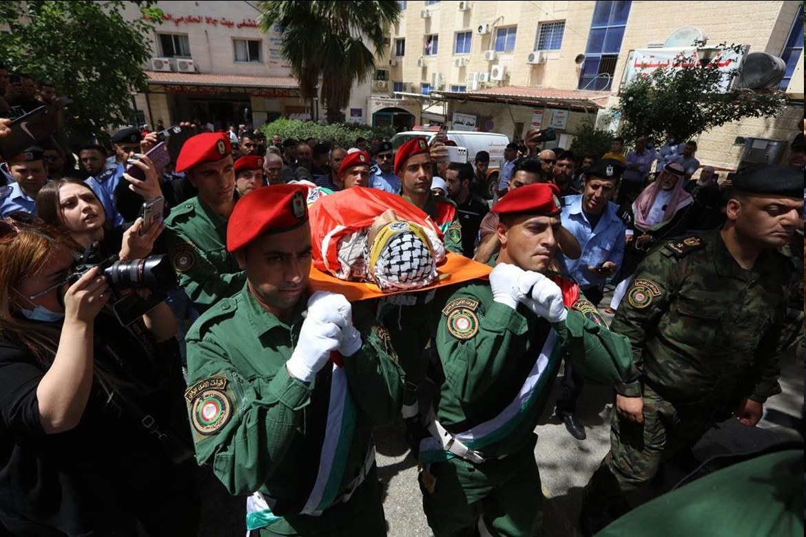 الكوفية شيع الآلاف ظهر اليوم السبت، جثمان الشهيد الطفل زيد غنيم (15 عاماً)، الذي ارتقى برصاص قوات الاحتلال الإسرائيلي في بلدة الخضر جنوب بيت لحم مساء أمس الجمعة.