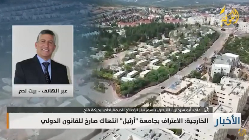 بيت لحم: قال الناطق باسم تيار الإصلاح الديمقراطي في حركة فتح، علي أبو سرحان، إن "غياب الرقابة الدولية شجعت دولة الاحتلال لفرض أجندتها الاستيطانية".
