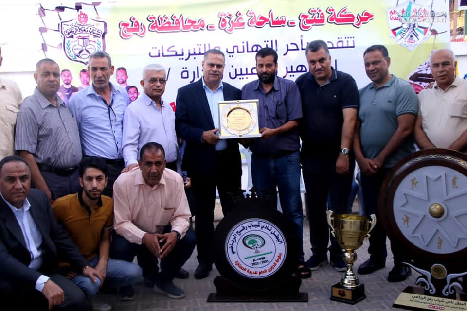 وقدم وفد قيادي يتقدمه أمين سر حركة فتح صلاح العويصي، التهاني والتبريكات لنادي شباب رفح الرياضي، ناقلين تهاني قائد تيار الإصلاح الديمقراطي في حركة فتح، محمد دحلان.