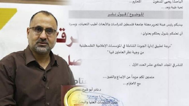 وهدفت الدراسة التي أجراها الباحث د. يحيى المدهون، إلى التعرف على درجة تطبيق إدارة الجودة الشاملة في المؤسسات الإعلامية الفلسطينية، واعتمدت على منهج المسح الإعلامي، واستخدمت استبانة بأبعادها الخمسة؛ لفحص جودة كل من: "الإدارة الإعلامية، اتخاذ القرارات الإدارية، الكوادر الإعلامية، الرسائل الإعلامية، الموارد المادية" وطبقت على عينة عشوائية بسيطة مكونة من "143" مبحوث من العاملين في المؤسسات الإعلامية الفلسطينية بمحافظات غزة.