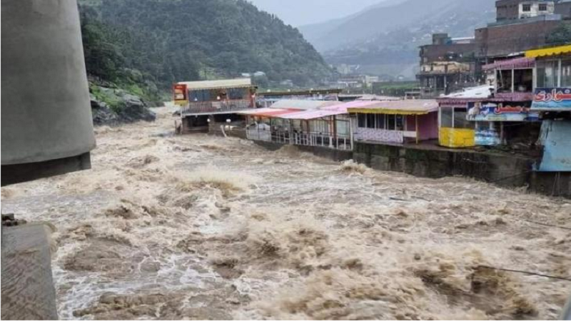 ودمرت مياه الأودية في مقاطعة "خيبر بختونخوا"، العشرات من المباني من بينها فندق يضم 150 غرفة جرفته المياه.