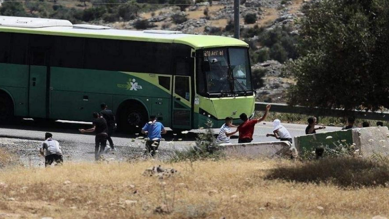 إصابة مستوطن وتضرر حافلة رشقا بالحجارة قرب الخليل