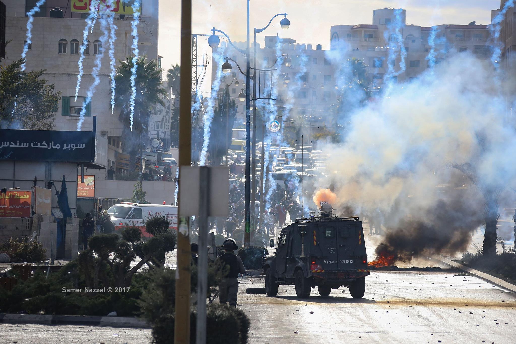 وأحصيت 14 نقطة مواجهة في الخليل ورام الله وبيت لحم وجنين وسلفيت ونابلس وطوباس.