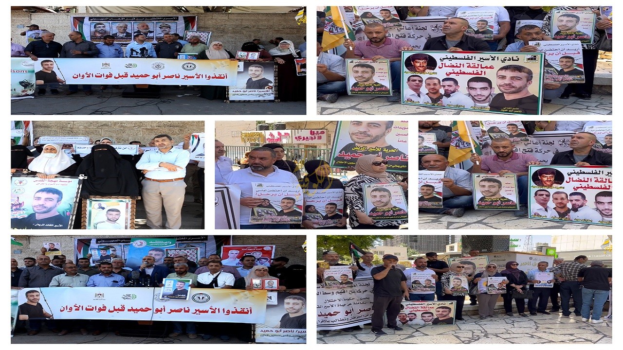 الخليل: نظم نادي الأسير وهيئة شؤون الأسرى، اليوم الاثنين، وقفة تضامنية مع الأسير ناصر ابو حميد، والأسرى المرضى في سجون الاحتلال.