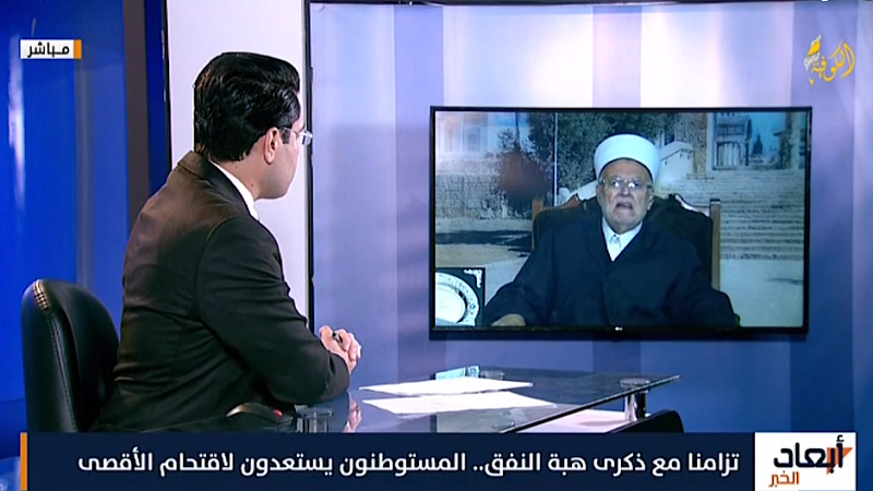 ودعا صبري، خلال لقائه في برنامج «أبعاد الخبر»، ويحاوره الإعلامي يحيى النوري، على قناة «الكوفية»، مساء اليوم الأحد، المواطنين لشد الرحال إلى المسجد الأقصى، لإفشال مخطط الاحتلال في نفخ البوق إلى باحات الأقصى.