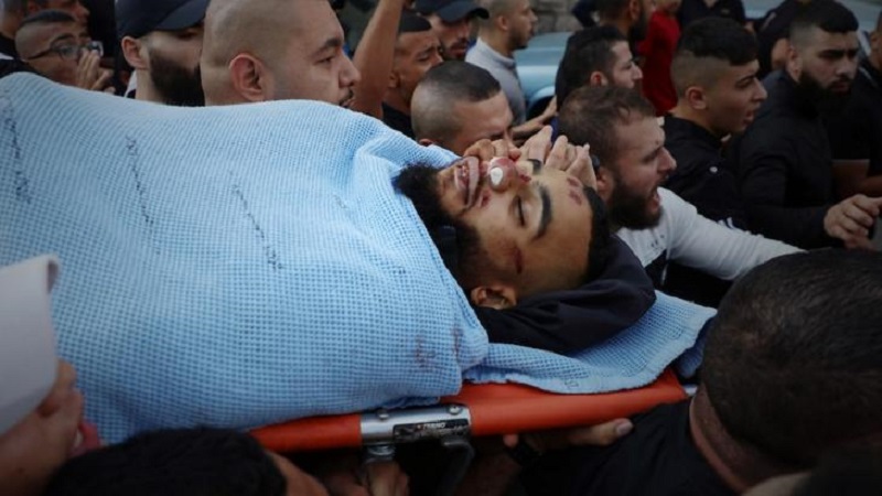 وجرى نقل الشهيد من مستشفى الدكتور خليل سليمان الحكومي، إلى مسجد المخيم بمشاركة ممثلي القوى والفعاليات المختلفة وسط ترديد التكبيرات.