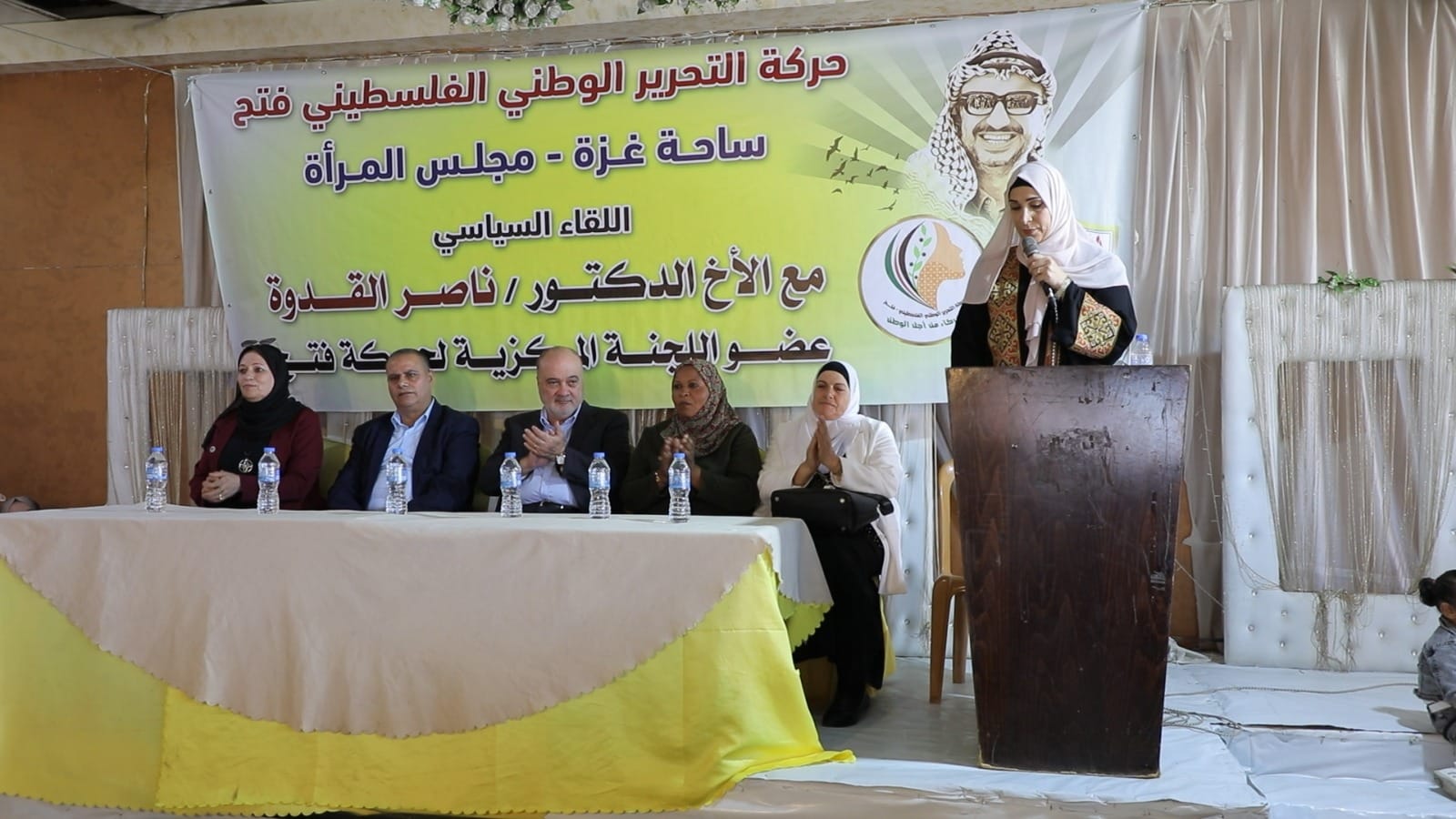 من جهته، أكد القيادي في حركة فتح ناصر القدوة، أهمية دور المرأة الفلسطينية في الجياة السياسية والاجتماعية.