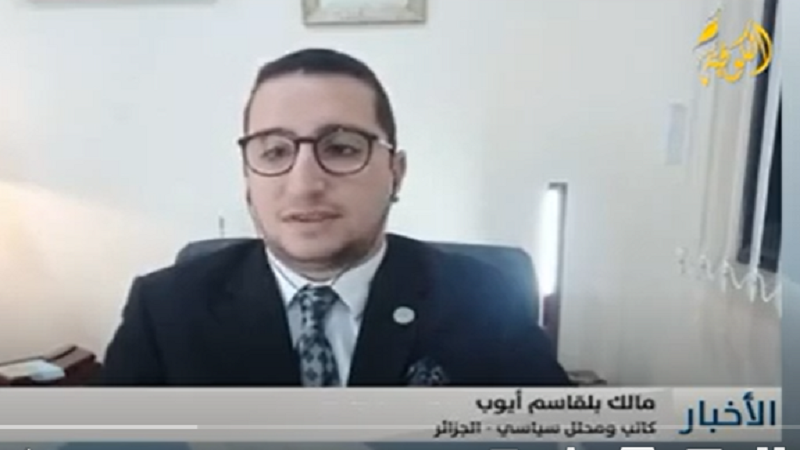 الجزائر: قال الكاتب والمحلل السياسي، مالك أيوب إن "موقف الجزائر ثابت وداعم للقضية الفلسطينية، فقد عقدت اجتماع فصائلي للمصالحة الفلسطينية، للم الشمل الفلسطيني".