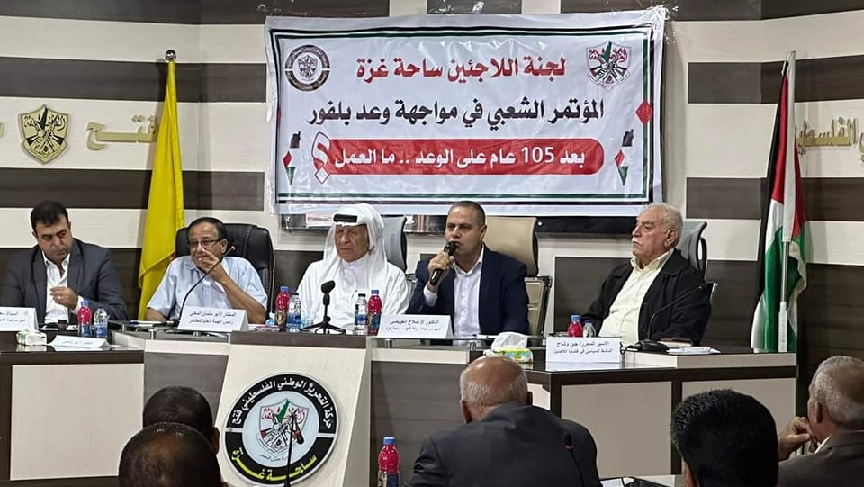 غزة: قال أمين سر قيادة حركة فتح بساحة غزة، د. صلاح العويصي، إن "حركة فتح - لجنة اللاجئين في ساحة غزة، تؤكد بحضور لفيف من الوجهاء والأكاديميين والباحثين أن كبارنا شهود على الوعد المشؤوم وصغارنا لن ينسوا فلسطين".