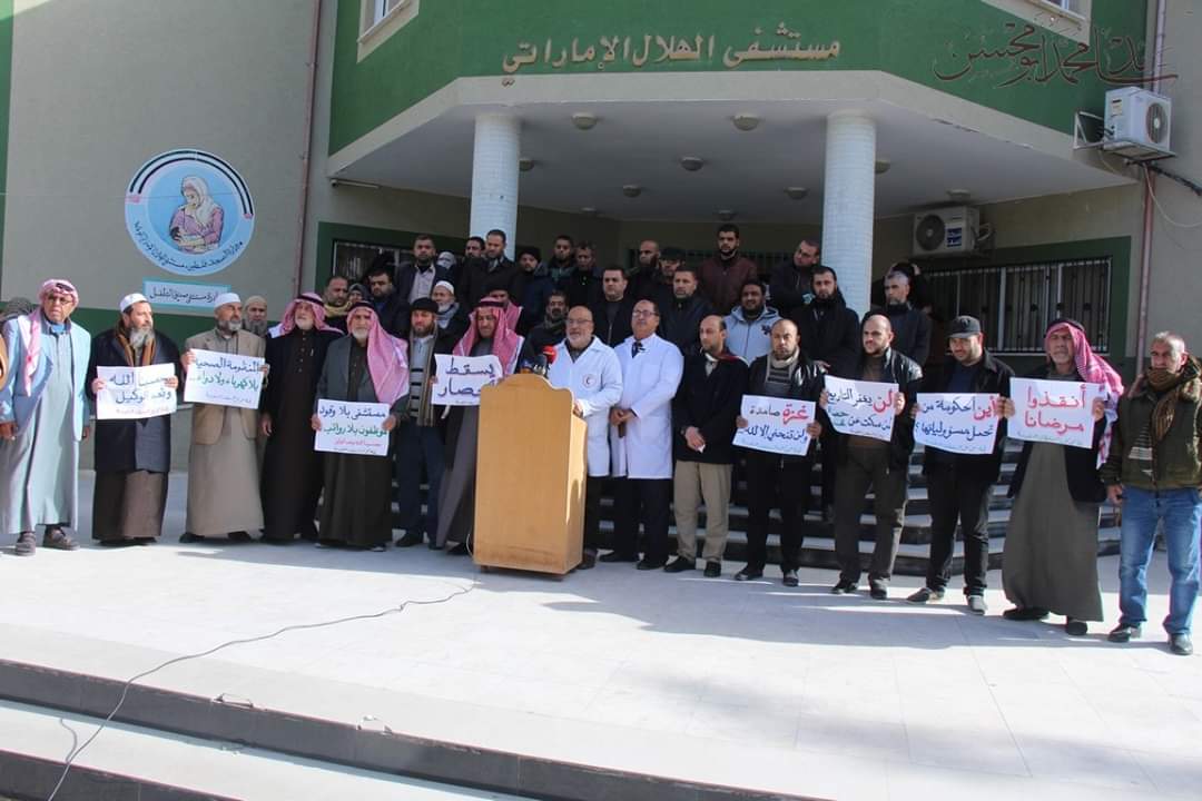 رفح|| نظم مجموعة من الوجهاء والفصائل الفلسطينية وقفة احتجاجية بشأن أزمة الوقود التي تهدد سير عمل مستشفى الهلال الإماراتي بمدينة رفح جنوب قطاع غزة.