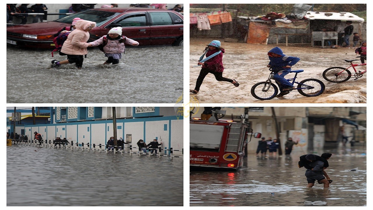 وغرق العديد من المنازل والشوارع في عدة مناطق في قطاع غزة، كما تدافعت مياه الأمطار للعديد من المدارس والمنشآت.