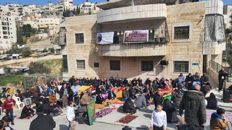 مواطنون يؤدون صلاة الجمعة أمام مبنى مهدد بالهدم في سلوان