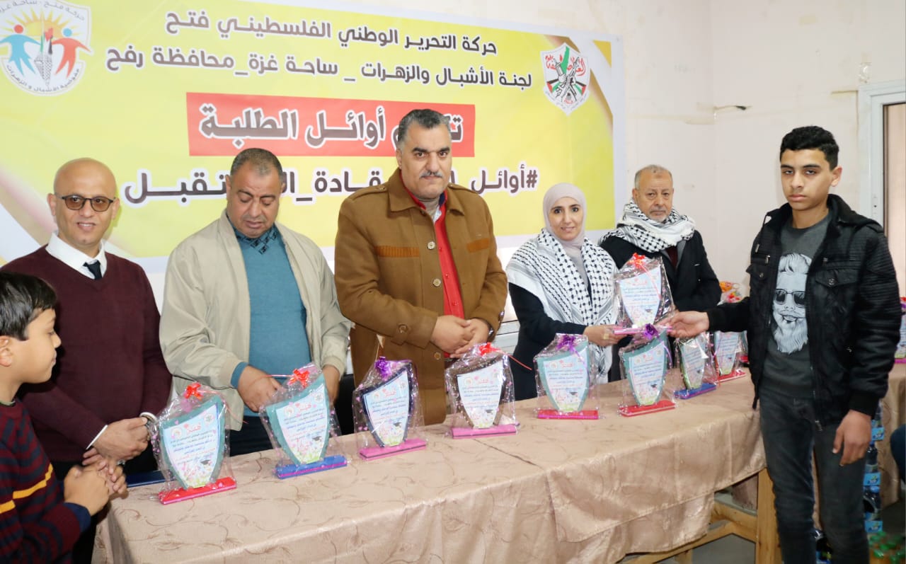 رفح: كرمت لجنة الأشبال والزهرات بحركة فتح في محافظة رفح، صباح اليوم السبت، الطلبة المتفوقين للفصل الدراسي الأول في المدارس الحكومية والوكالة والخاصة بالمحافظة.