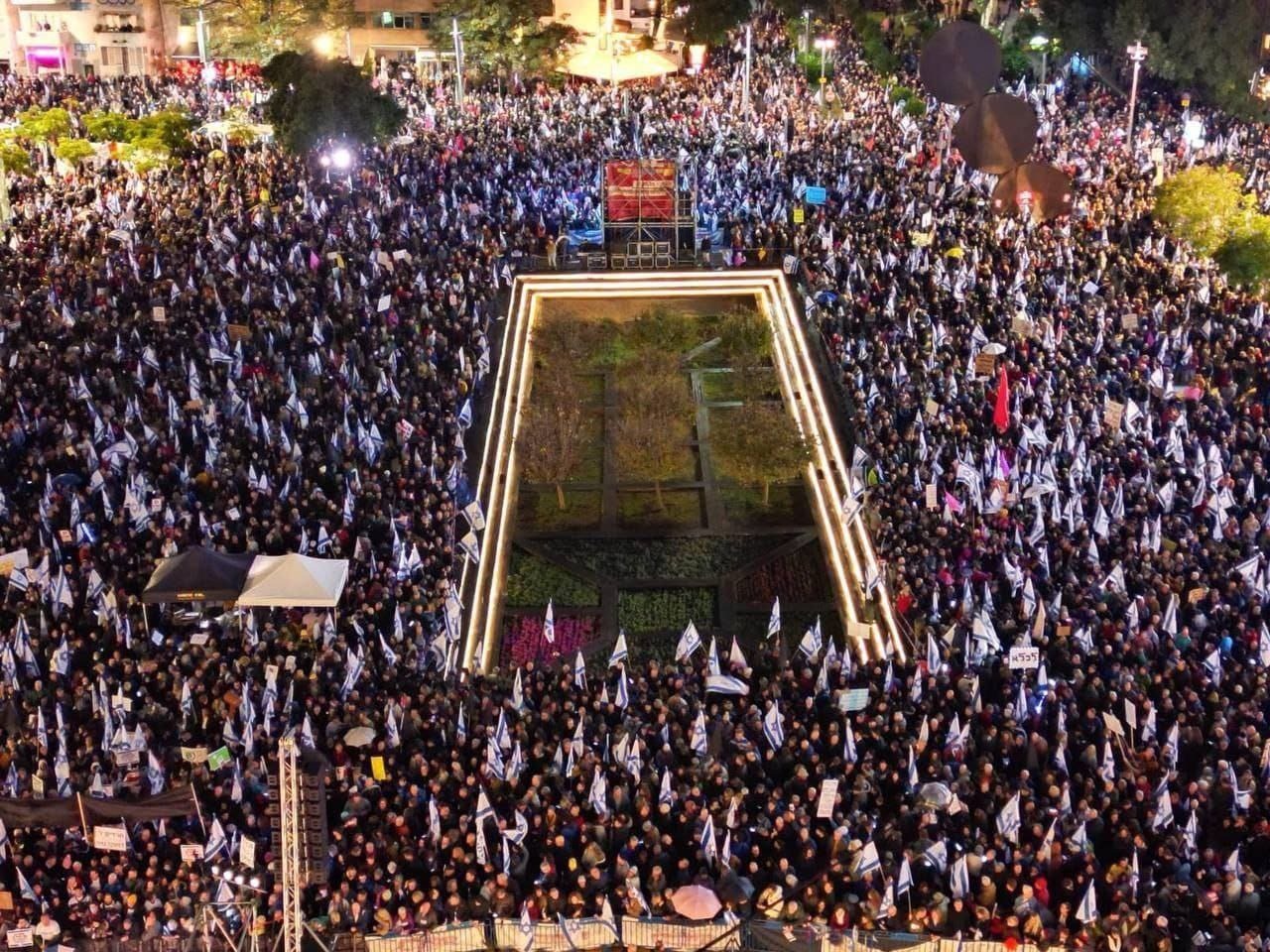 تل أبيب: وصل نحو 15000 متظاهر إسرائيلي إلى شارع كابلان في القدس الغربية، بالقرب من مبنى الكنيست، حيث سيتم التصويت على خطة حكومية مثيرة للجدل لإصلاح القضاء.