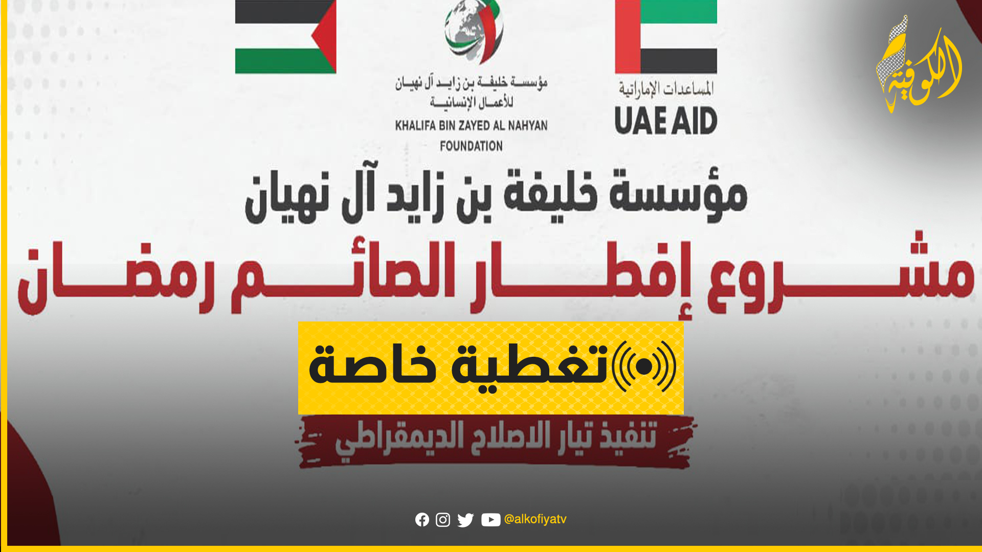 غزة: أطلق تيار الإصلاح الديمقراطي في حركة فتح ساحة غزة، ومؤسسة خليفة بن زايد آل نهيان للأعمال الإنسانية، مشروع "إفطار الصائم" للعام 2023م-1444هـ في قطاع غزة.
