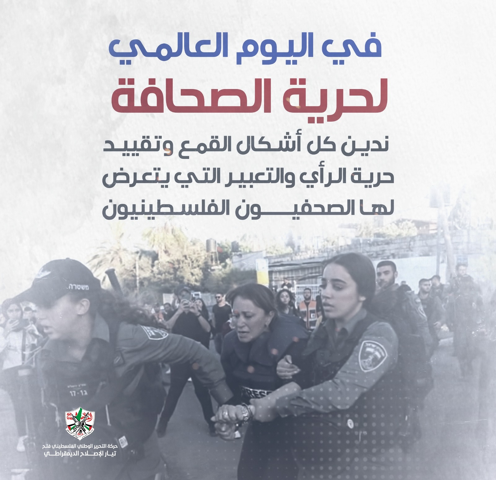 وقال الناطق باسم تيار الإصلاح الديمقراطي في حركة فتح، الدكتور عماد محسن، في تصريح بمناسبة اليوم العالمي لحرية الصحافة، إن "الاحتلال الإسرائيلي يتجاهل كافة المواثيق الدولية التي تكفل الحماية للصحفيين، ويمارس تنكيله بحقهم، بدءًا بالاعتقال ومصادرة المعدات والتوقيف على الحواجز والضرب والاعتداء الجسدي وليس انتهاءً بالإعدام بدمٍ باردٍ كما حدث في جريمة اغتيال أيقونة الإعلام العربي شيرين أبو عاقلة وبقية شهداء الصحافة الفلسطينية".