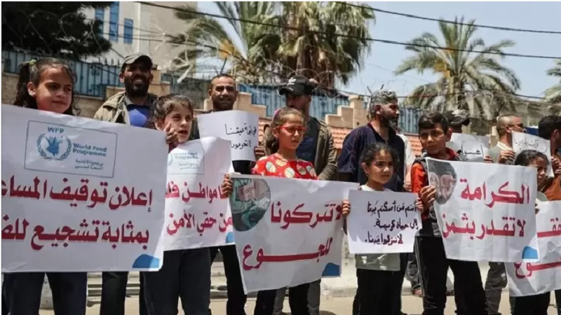 غزة: تظاهر عشرات المواطنين في قطاع غزة، اليوم الأحد، في وقفة رفضا لاعتزام برنامج الأغذية العالمي التابع للأمم المتحدة تعليق مساعداته لـ200 ألف فلسطيني بداية من يونيو/ حزيران المقبل.