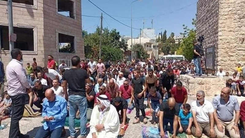وأقيمت الصلاة قرب البركة الثالثة، قبالة البؤرة الاستيطانية "أم محيمدين" المقامة عنوة على أراضي المواطنين.