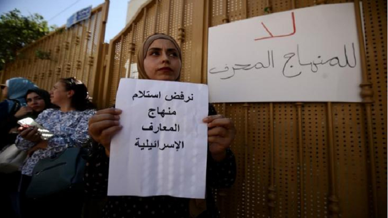 وخلال خطبة الجمعة الماضية، قال خطيب المسجد الأقصى الشيخ عكرمة صبري إن تدريس المنهاج الإسرائيلي في المدارس الفلسطينية لا يجوز شرعًا.