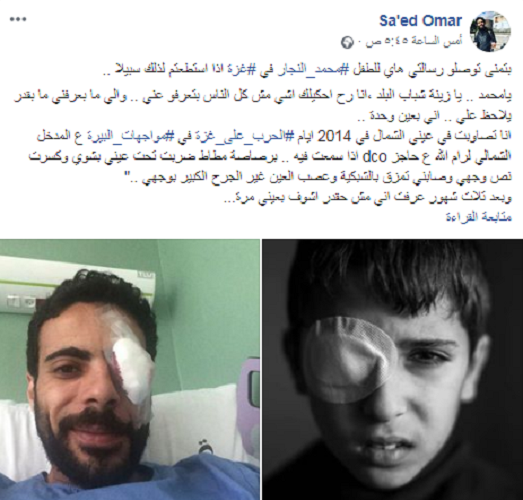 متابعات|| بعث الجريح الفلسطيني سعد عمر من مدينة رام الله السبت، رسالةً مؤازرة للجريح الطفل محمد النجار من قطاع غزة.