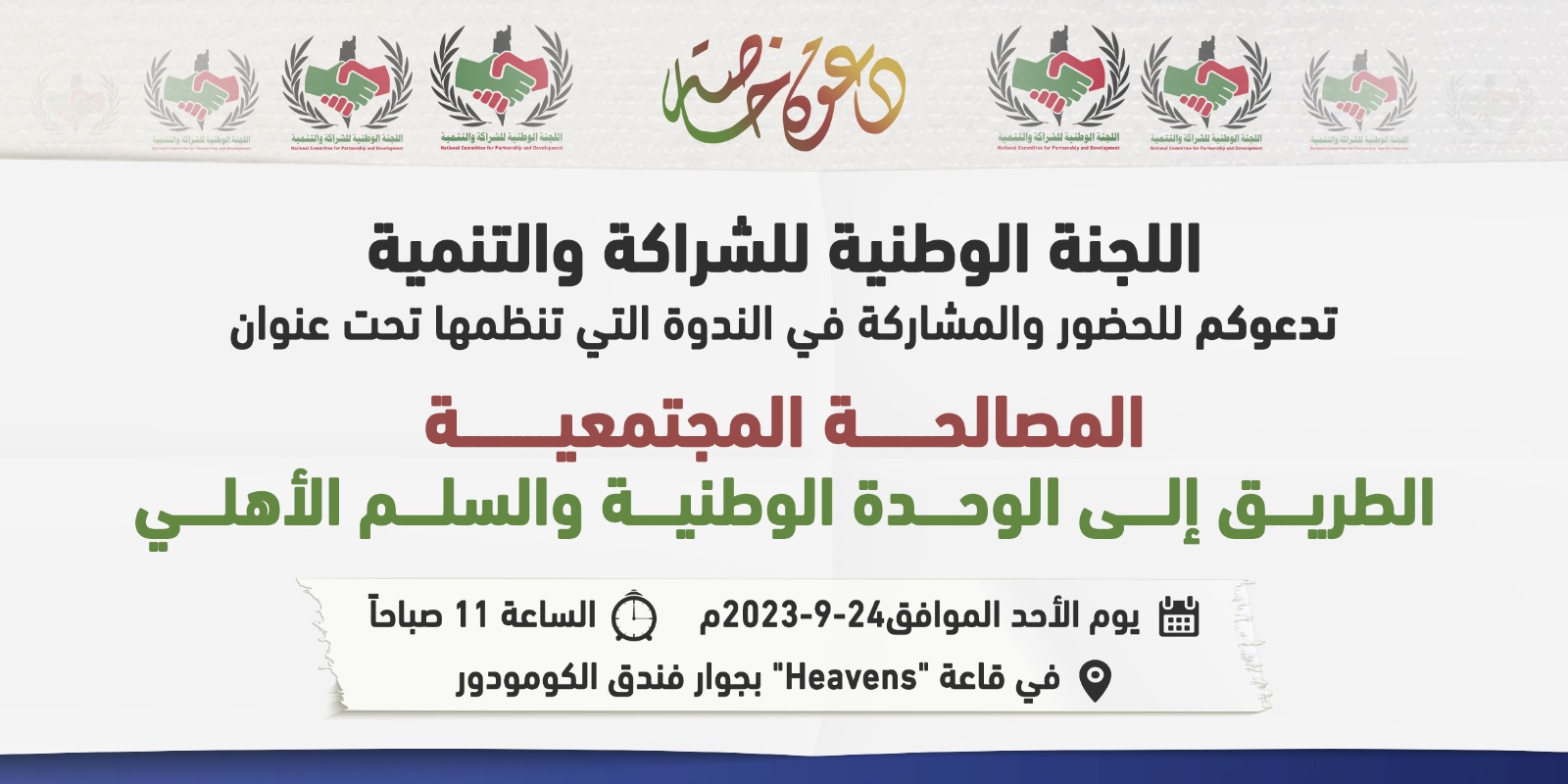 اللجنة الوطنية للشراكة والتنمية تنظم لقاءً حول «المصالحة المجتمعية».. اليوم بمدينة غزة