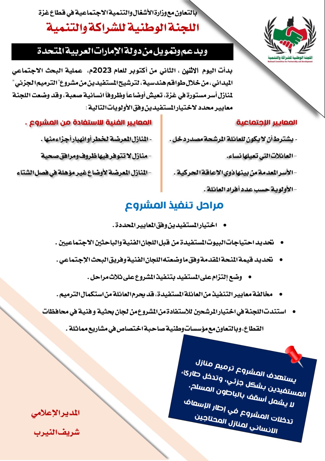 اللجنة الوطنية للشراكة والتنمية تبدأ تنفيذ مشروع "الترميم الجزئي" بدعم إماراتي