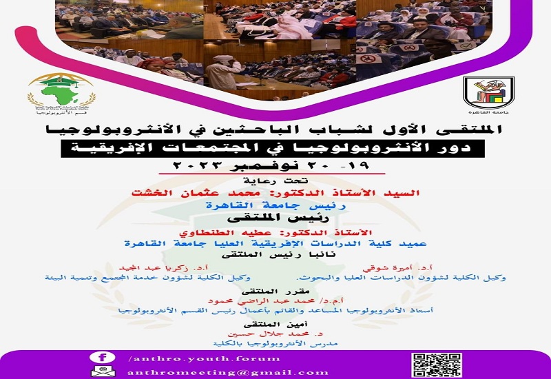 القاهرة: ينظم قسم الأنثروبولوجيا بكلية الدراسات الأفريقية العليا، جامعة القاهرة ١٩ - ٢٠ نوفمبر/ تشرين الثاني الجاري، الملتقى الأول لشباب الباحثين في الأنثروبولوجيا بعنوان "دور الأنثروبولوجيا في المجتمعات الأفريقية".