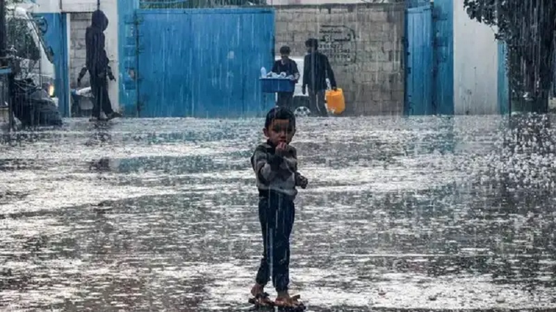 «الصليب الأحمر» يناشد المنظمات الدولية بتوفير ملابس شتوية للنازحين في جنوب القطاع