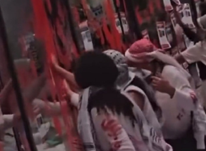 متظاهرون يلطخون بوابات سفارة الاحتلال في أمريكا بلون الدماء || فيديو