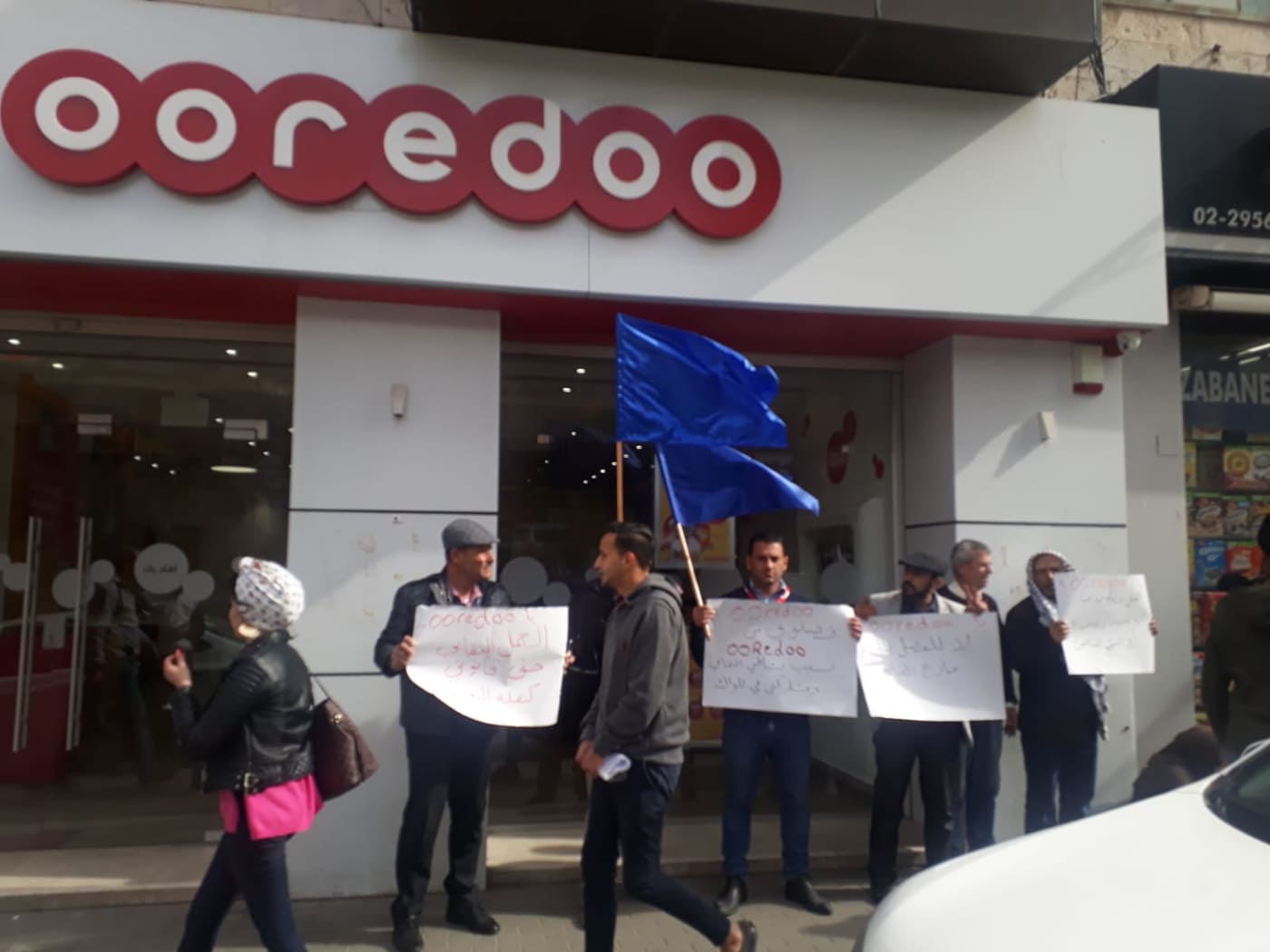 رام الله: نظم العشرات اعتصاما أمام أحد مقرات شركة "الوطنيه للاتصالات" في وسط مدينة رام الله، احتجاجا على فصل السيد، صهيب زاهده، من عمله في شركة الوطنية، بعد مشاركته في فعاليات ضد قانون الضمان، و ترأسه منسق عام الحراك ضد "قانون الضمان الاجتماعي" في محافظة الخليل.