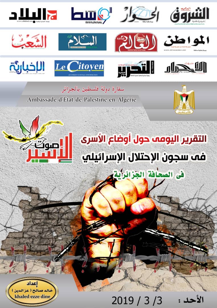 الجزائر|| واصل الإعلام الجزائري اهتمامه بأوضاع الأسرى الفلسطينيين القابعين في سجون الاحتلال الإسرائيلي، ليؤكد أنه نافذة لفلسطين وقضايا الأسرى والقدس.