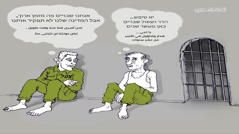 واحتوت الرسالة على رسم كاريكاتوري فيه اثنين من أسرى الاحتلال يتبادلان الحديث حول "تخلي حكومة نتنياهو عن الأسرى"، ويُشير الرسم إلى إهمال قضية الأسيرين الجنديين هدار وشاؤول وعدم عقد صفقة تبادل للعام الـ 10 على التوالي.
