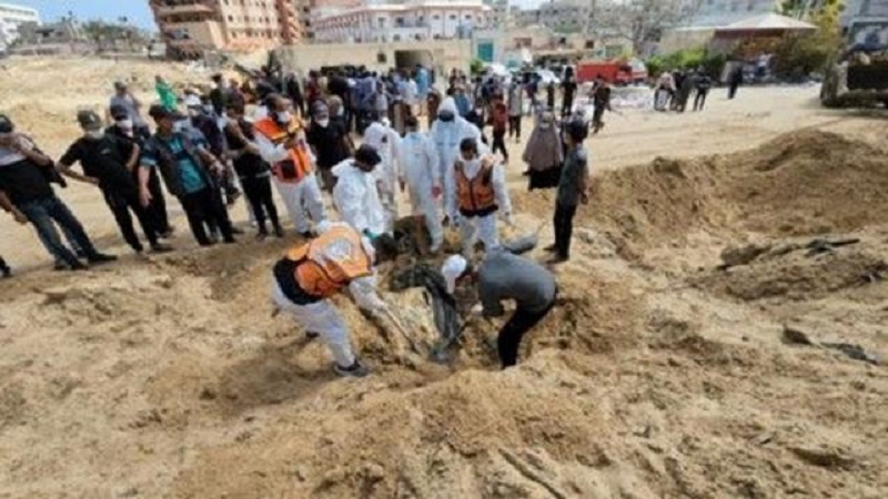 ولفتت المصادر إلى أن الاحتلال دفن 20 شخصا على الأقل بمجمع ناصر الطبي وهم أحياء، وأن عددا من الجثامين دُفنوا في أكياس بلاستيكية على عمق 3 أمتار، ما سرّع تحللهم، مشيرة إلى أن الاحتلال عمد إلى إخفاء الأدلة على جرائمه بمجمع ناصر، عبر تغيير الأكفان البلاستيكية أكثر من مرة.