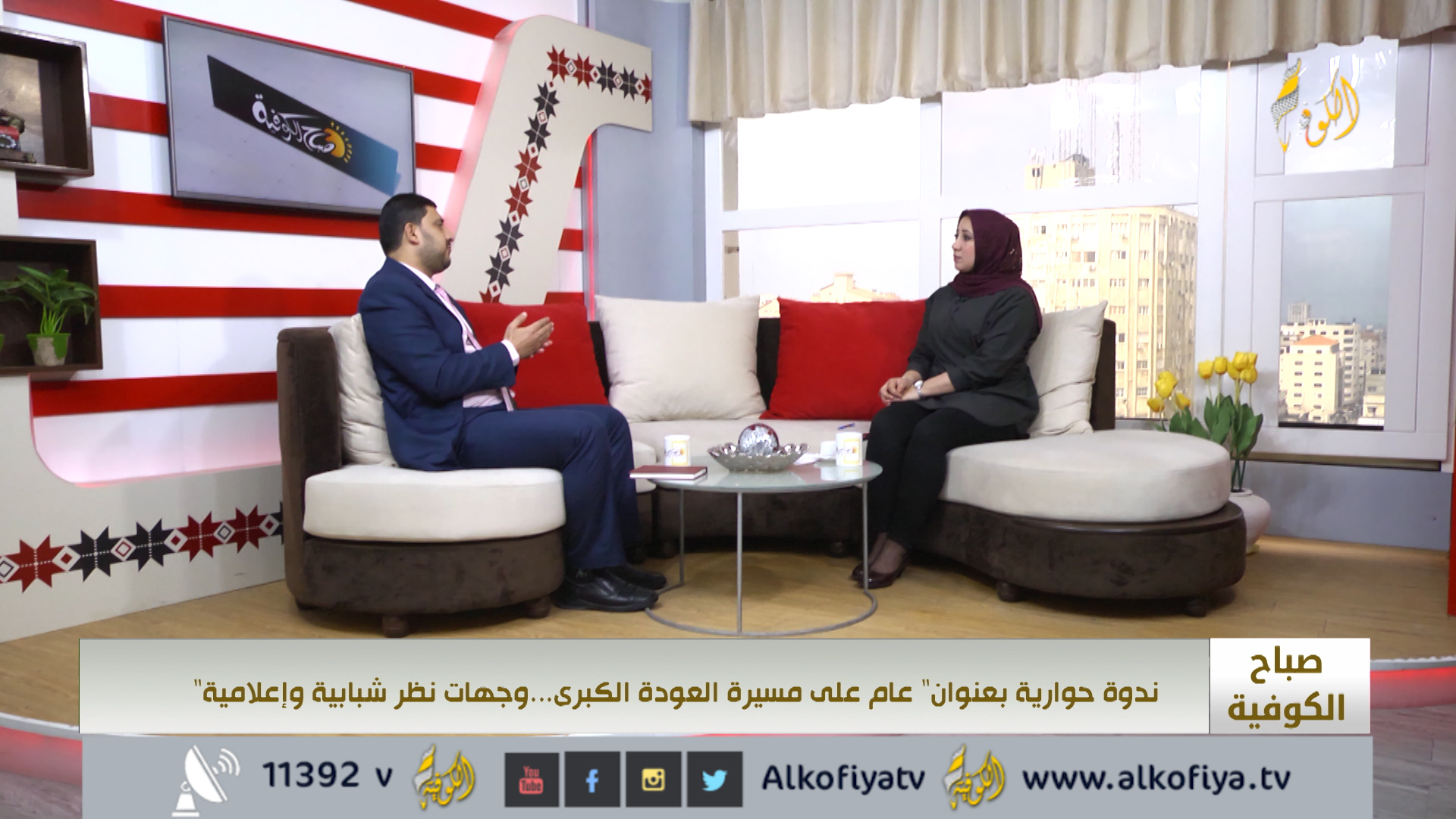 صباح الكوفية | ندوة حوارية بعنوان" عام على مسيرة العودة الكبرى...وجهات نظر شبابية وإعلامية"