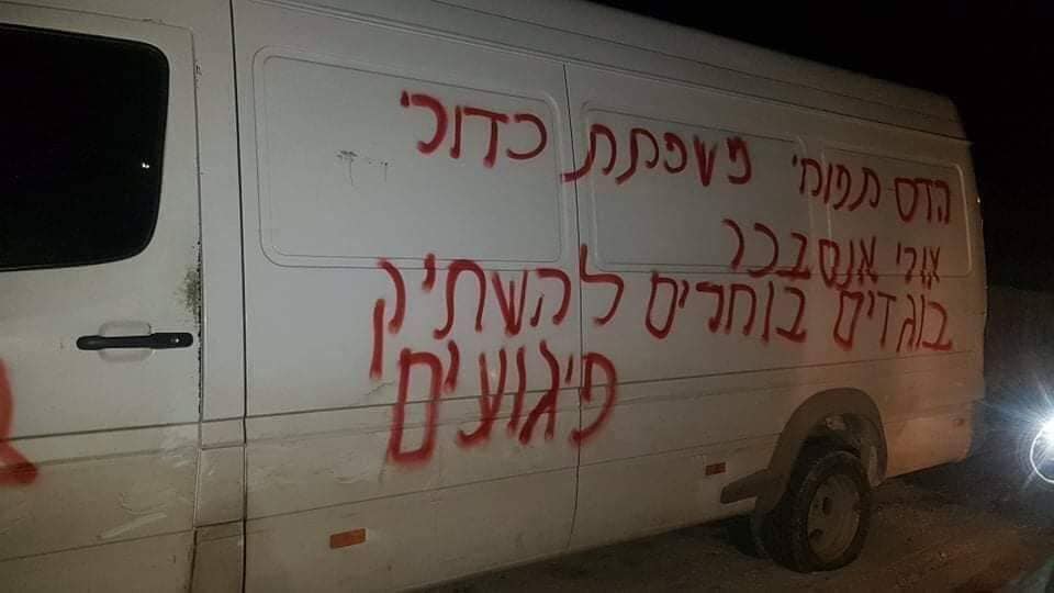 بالصور..مستوطنون يعطبون مركبات ويخطون شعارات عنصرية بالقدس