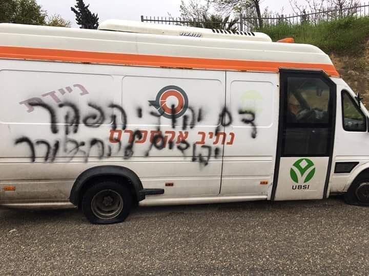 وأفاد شهود عيان بأن مستوطنين من عصابة "تدفيع الثمن" المتطرفة حطموا زجاج عدد من المركبات، وأعطبوا إطاراتها وخطوا شعارات عنصرية عليها وعلى الجدران المحاذية تدعو إلى قتل وترحيل العرب.
