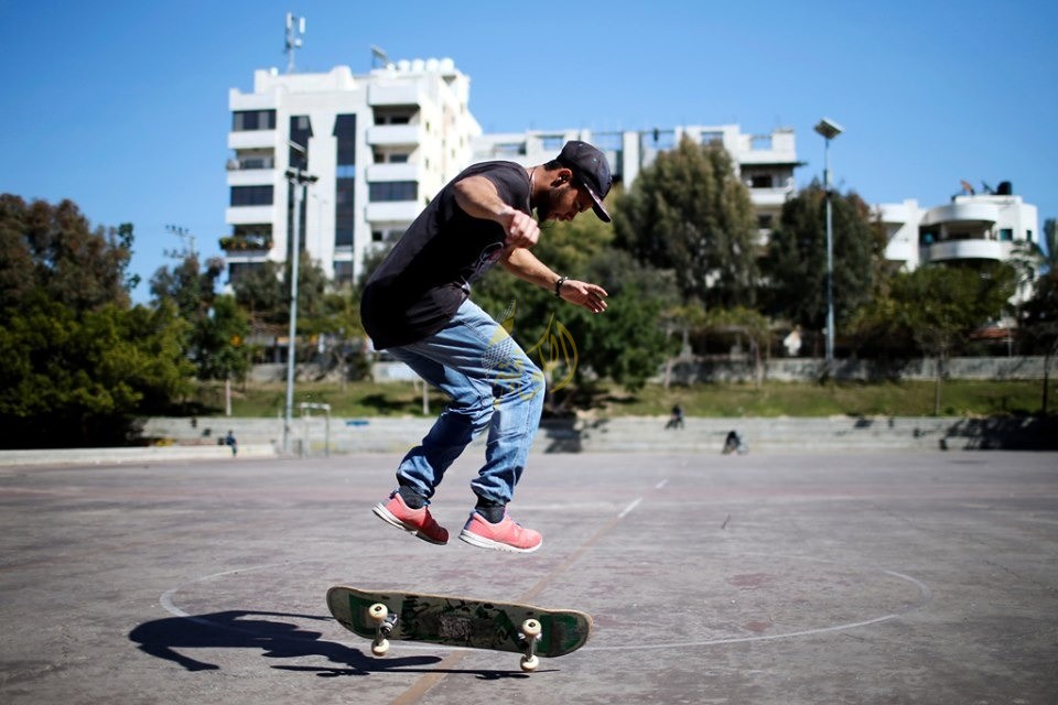 بالصور|| شباب غزة يمارسون رياضة التزلج بحثا عن المتعة