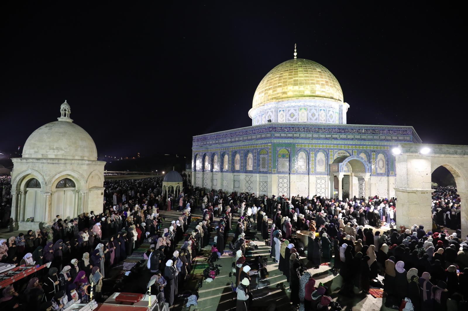 وذكرت دائرة الأوقاف الإسلامية في القدس أن "نحو 70 ألف مصل أدوا صلاتي العشاء والتراويح في رحاب المسجد الأقصى"، غالبيتهم من أبناء المدينة المقدسة أو من داخل أراضي عام 1948.