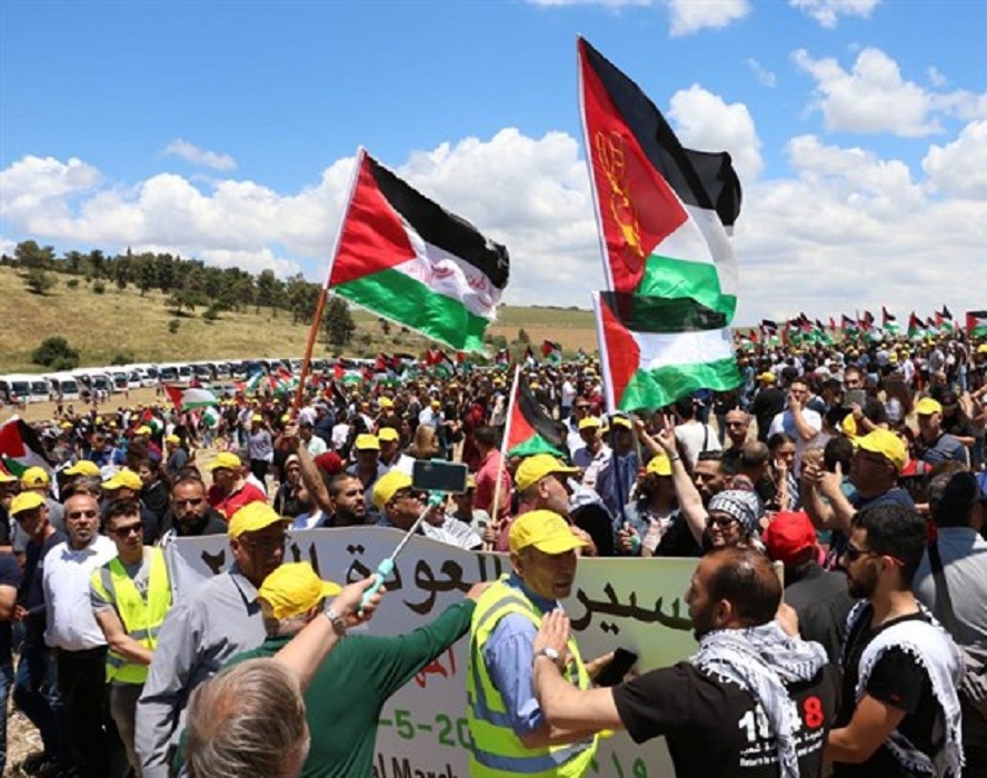 وأكد المشاركون بالذكرى الـ71 للنكبة إصرارهم على حقهم العودة للوطن والقرى المهجرة التي دمرتها العصابات الصهيونية إبان نكبة العام 1948.