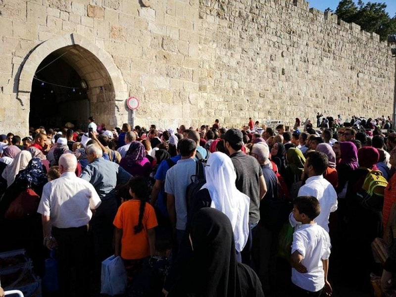 وعبر مئات الآلاف من الفلسطينيين إلى القدس للصلاة بالمسجد الأقصى المبارك في الجمعة الأخيرة من رمضان، وسط إجراءات الاحتلال المشددة نتيجة تدهور الأوضاع في المدينة المقدسة.