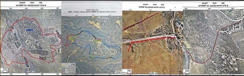 وأضافت أن الأمر الثالث استهدف مساحة تقدر بـ 2.203 دونمات من أراضي قرية الطيبة شرق رام الله، بهدف إقامة سياج شائك على الطريق المؤدي على مستوطنة"ريمونيم"، وحمل الرقم ت/74/25، في حين استهدف الأمر الرابع مساحة 18.279 دونما من أراضي قرية رأس كركر، بهدف إقامة منطقة عازلة حول مستوطنة"تلمون"، حيث يشير إلى أن هذا الأمر هو تعديل على أمر سابق جرى إصداره في عام 2006 بحيث يتم إلغاء مساحات من الأمر وإضافة مساحات جديدة بهدف توسعته، منها تخصيص ما مجموعه 12.61 دونماً من أراضي معلنة كأراضي دولة لصالح الأمر العسكري مما يحكم المنطقة العازلة حول المستعمرة، وحمل الرقم ت/35/06.