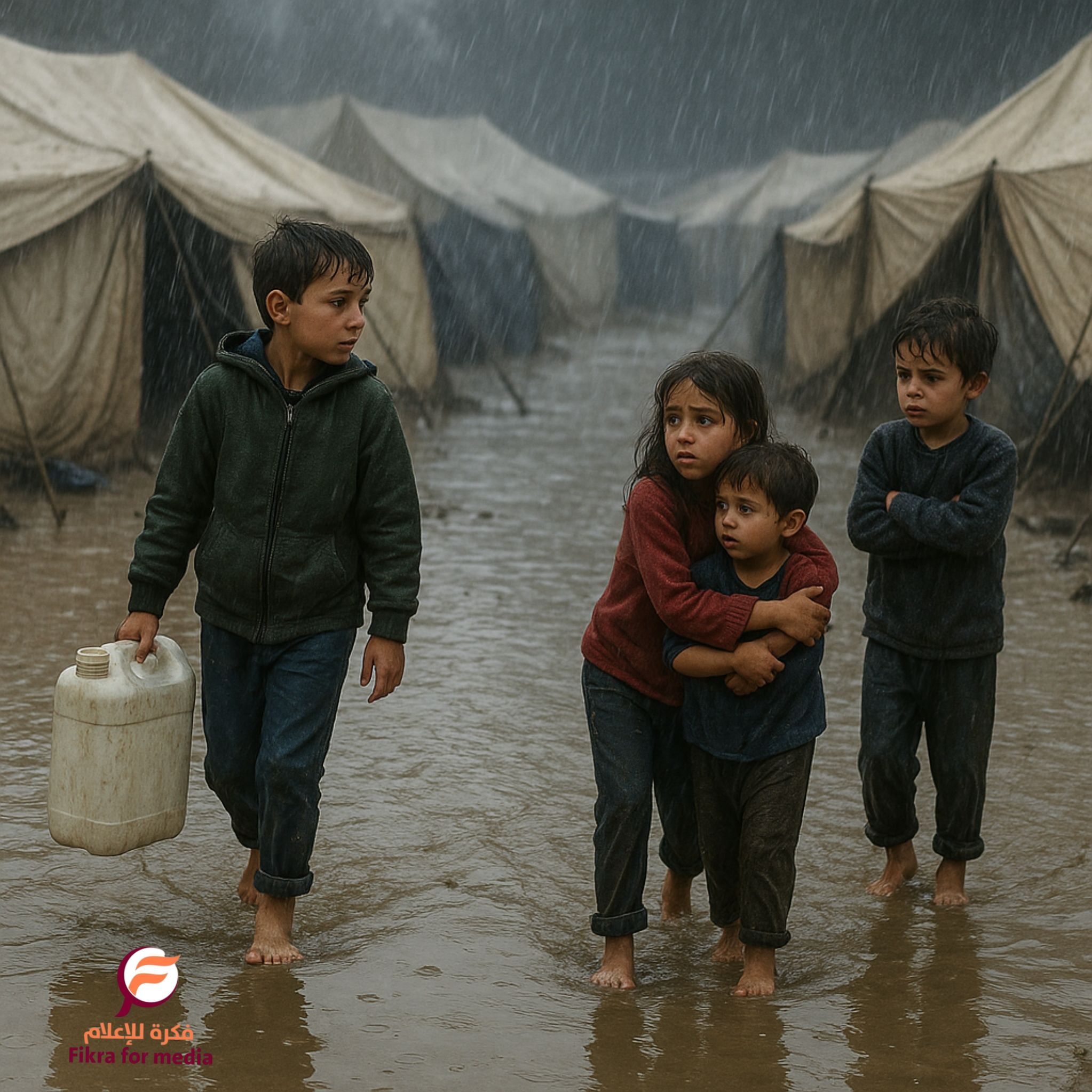 الكوفية مع دخول منخفض جوي قوي، تحوّلت مخيمات النزوح في غزة إلى برك مياه ضخمة أغرقت آلاف الخيام الممزقة أصلًا بفعل عامين من القصف والتهجير.