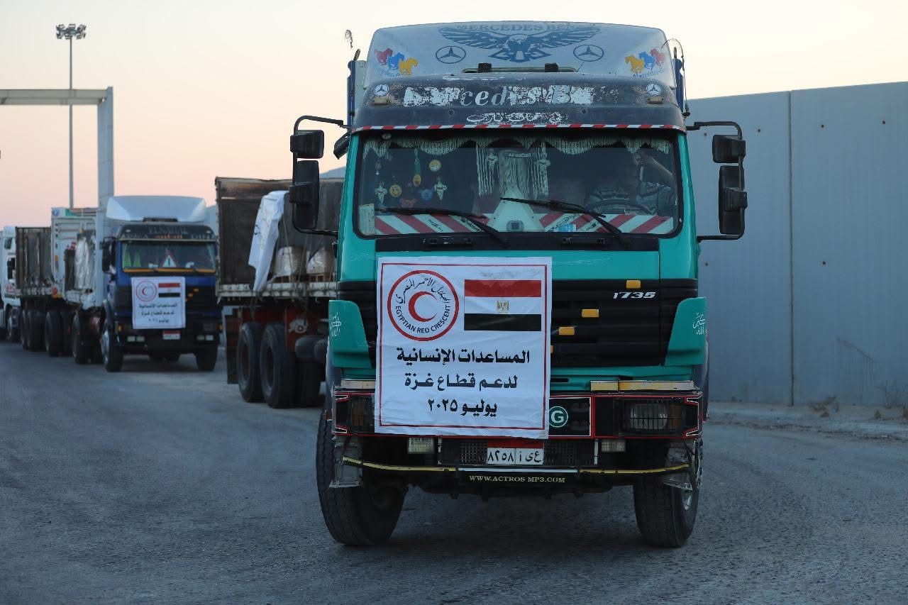 الكوفية سَيَّر الهلالُ الأحمرُ المصريُّ، قافلةَ "زادِ العزةِ الثانيةَ والثمانين"، إلى قطاعِ غزة، وهي واحدةٌ من أكبرِ القوافلِ التي تُسيِّرُها مصرُ منذ بدايةِ الأزمة.