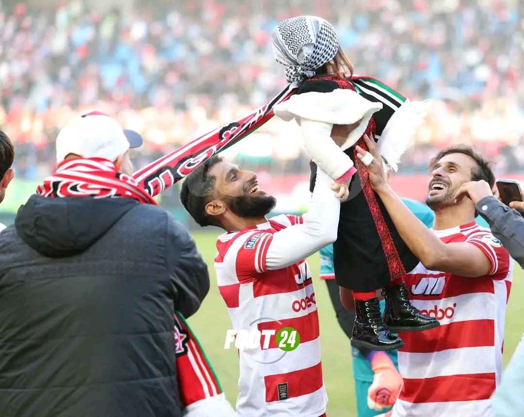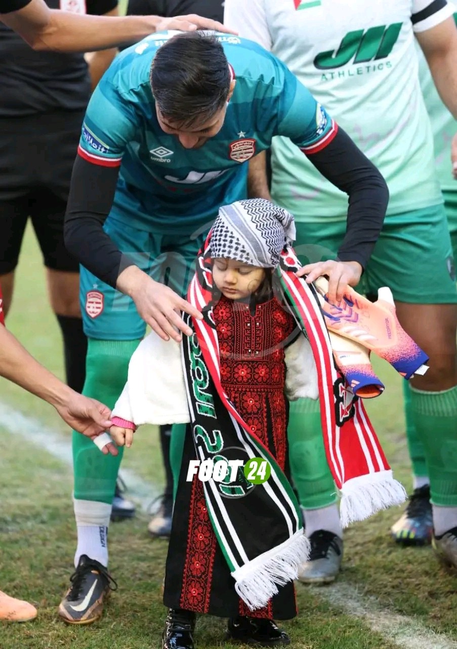 واحتفى لاعبو الفريقين، بالطفلة الناجية من الموت، والتي تم انتشالها من تحت الأنقاض في قطاع غزة خلال الحرب، قبل أن يتم نقلها إلى تونس لتلقي العلاج.